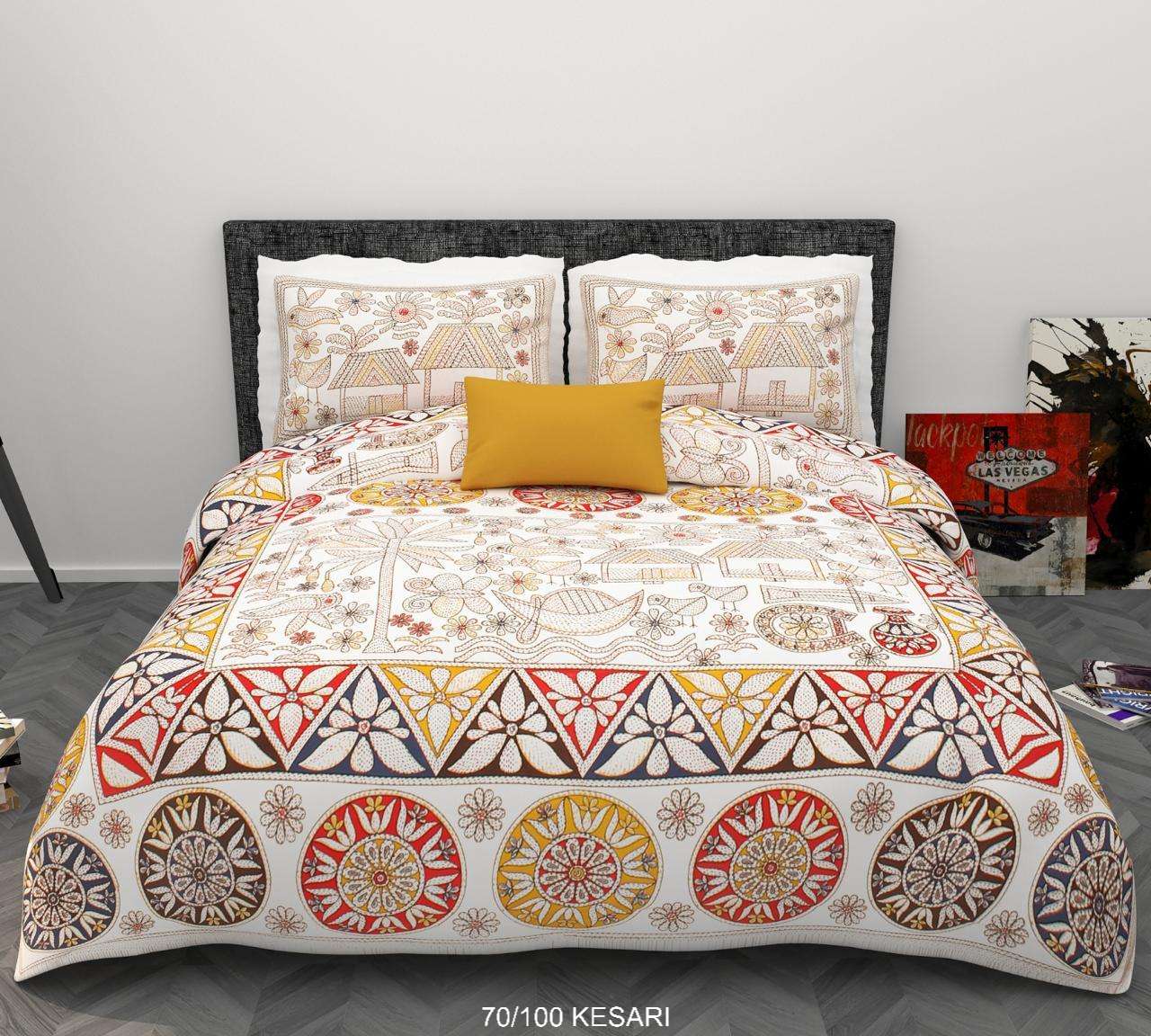 70″x100″ Pure Cotton Diwan Bedsheet with 2 Pillow Covers