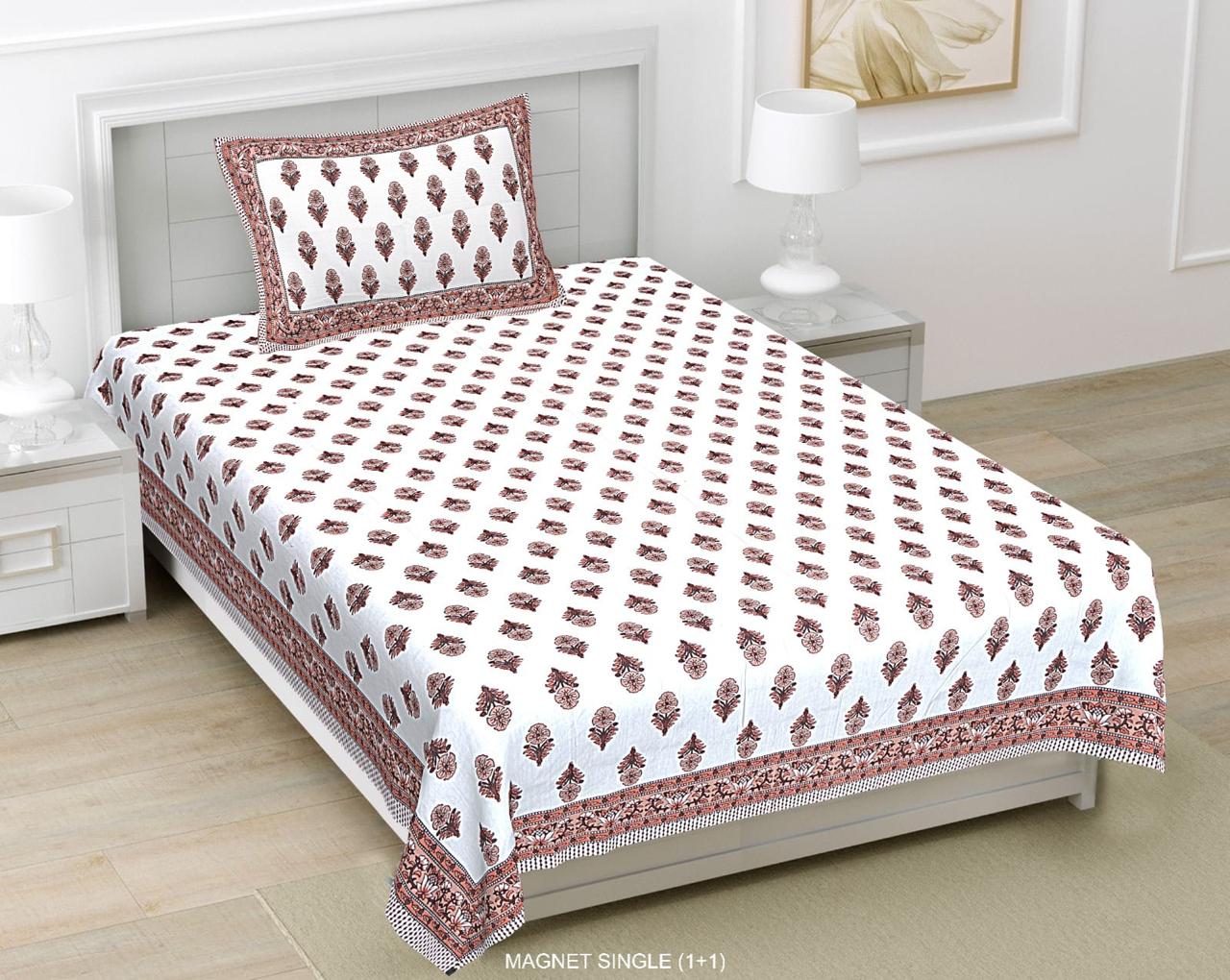 Jaipuri Single Bedsheet Pure Cotton 60×90 Inches | 1 Pillow Cover | Cotton Single Bedsheet